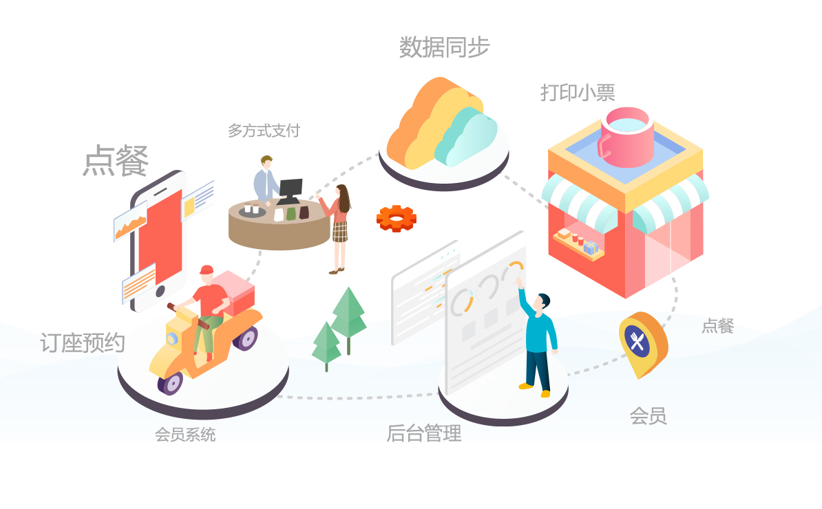 能夠幫助餐廳從點餐到收銀、從客戶服務(wù)到員工管理、從食材采購到外賣配送、從營銷管理到運營分析等各個環(huán)節(jié),